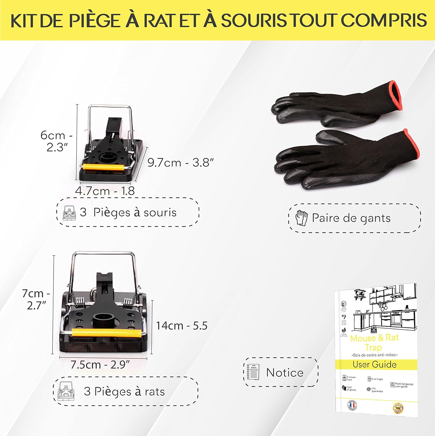 - De 2 à 5 pièges à rats XXL et de 2 à 5 pièges à souris (disponibles en kit de 4, 6 ou 10 pièges).