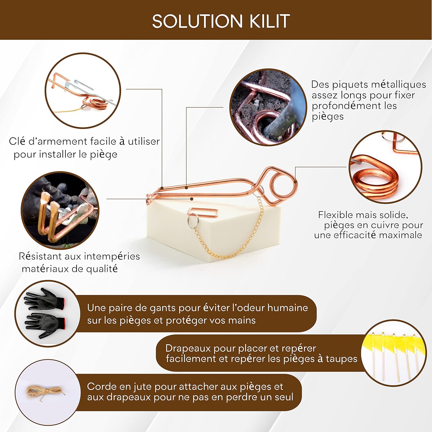 Protégez votre jardin avec le pack complet de pièges à taupes KILIT : la solution simple, efficace et durable pour une pelouse impeccable.